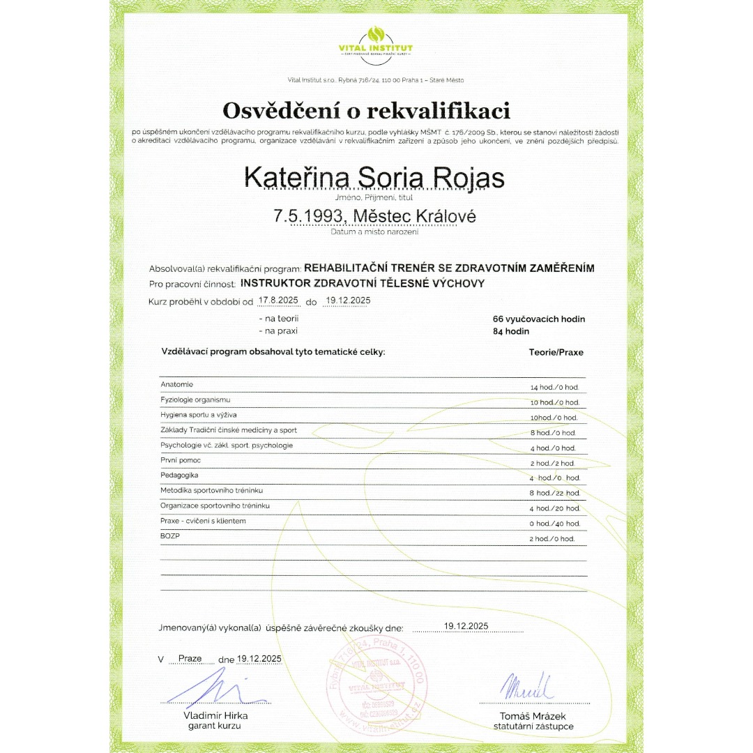 - Instruktor zdravotní tělesné výchovy – Vital institut
